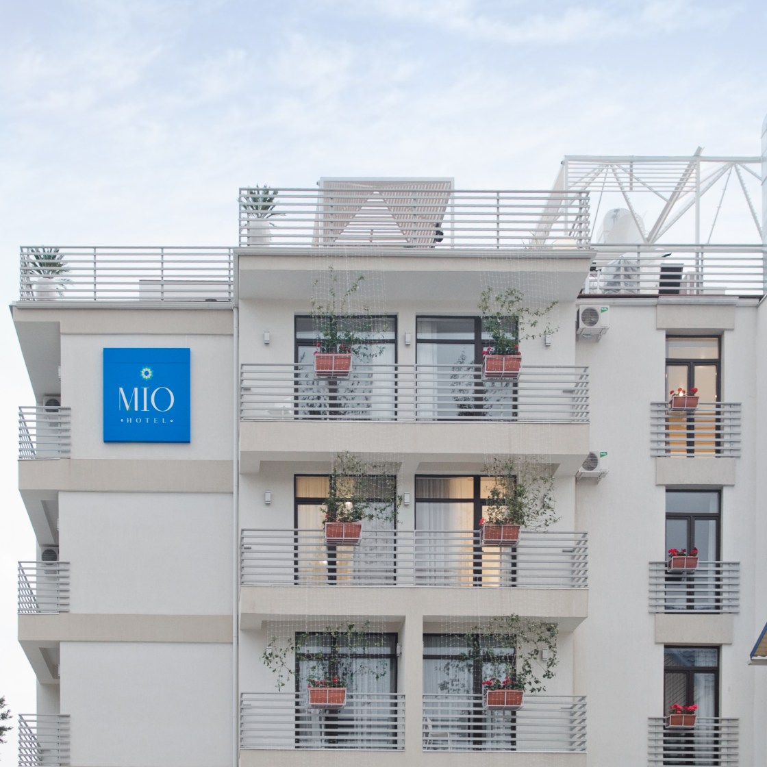 Главные составляющие отеля, помимо сетки номеров — патио с бассейном, огромная терраса на крыше, апартаменты люкс на верхнем этаже. Для патио был использован огромный баннер с белым фасадом малоэтажного отеля (с целью маскировки части застройки). Терраса на крыше задумана и организована полноценным открытым пространством с беседками, баром, бассейном и местом для загара. Все обустроено мебелью и аксессуарами Vondom, растениями, освещением, профессиональным звуком и цифровым экраном, предназначенным для круглогодичного использования на открытом воздухе.